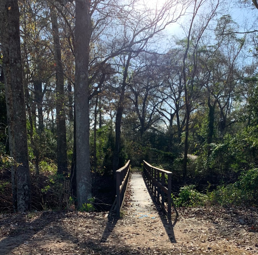 The little bridges cross you over the branch onto further running trails. You can see moms with strollers holding their infants and toddlers, soldiers in boots with rucksacks packed heavy with gear, often training for rigorous military schools, long-distance runners who move as lightly as the whitetails, and relaxed walkers with their earbuds in. I suppose there’s a lesson here–perhaps of our seasons. First, we are strolled by our mothers. Later in life we may find ourselves pushing our bodies physically to their limits. Then there’s a season where we are no longing running but walking at a leisurely pace.