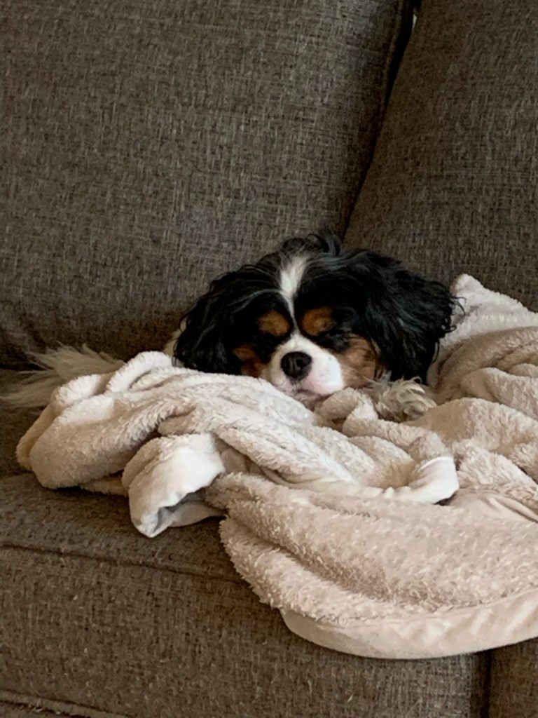 And because I’m such a softy for dogs, here’s one of our beloved Cavalier King Charles, Lady. We call her “Ladybug” usually. She has a tough life. She has to sleep, eat, go for walks, hang out with our German shepherd and our cat, Jo-Jo. That usually wears her out till it’s nap time again. Yep, if you have a chance, try to be Ladybug; she pretty much has it made.
