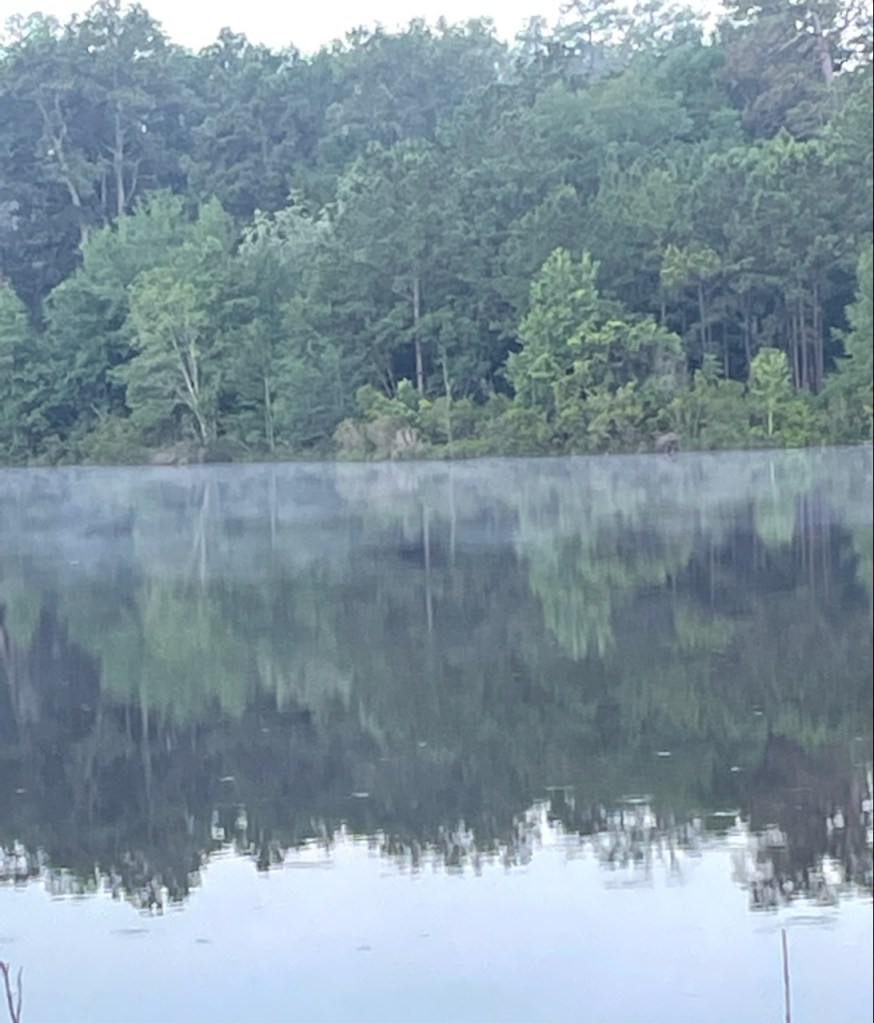 Drove to pick up Chick-fil-A breakfast for some instructors training future soldiers. Coming back onto post, this day’s sun rose over the armor and cavalry motorpools and the streets were washed honeycomb, and the fog hovering over the ponds was flocculent, then wispy, then all but vanished. The hours before dawn and the moments following attest, do they not?