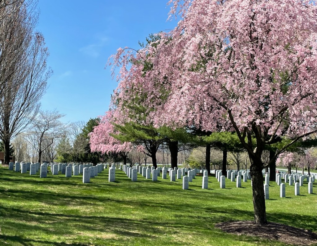 A short story begins . . . When I drove around the cemetery, several families of the deceased veterans were out at their loved one’s headstone. One woman, for example, was quite elderly. She had a small folding lawn chair out in the middle of rows upon rows of headstones. She had her chair facing her loved one’s headstone. She just sat there, totally still. Her hair was so white, she could easily have been a great-grandmother several times over. Her skin appeared paper thin. I could not tell whether she was crying, talking, praying, or perhaps a combination of any of those. She appeared as one in communion.