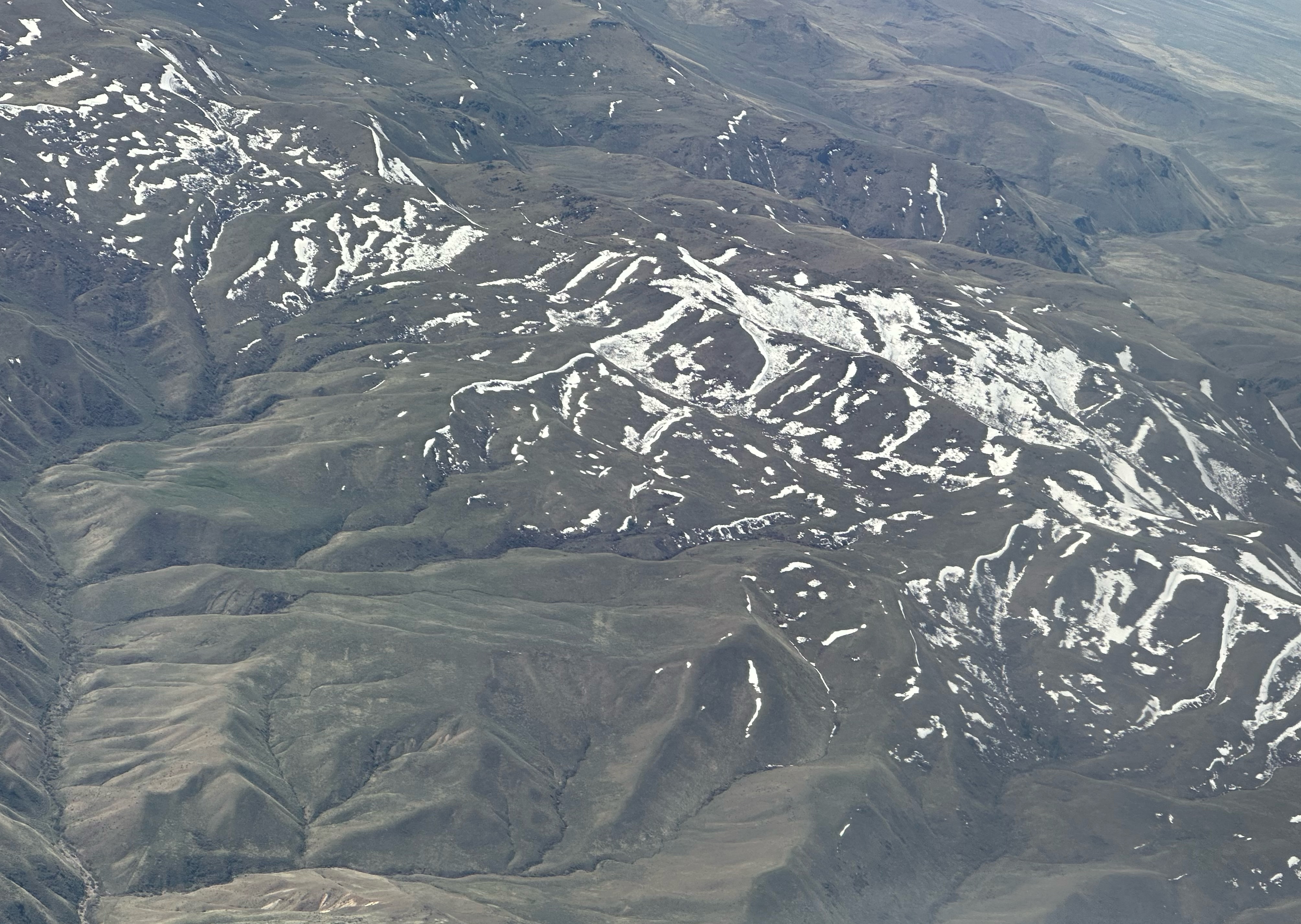 On the descent into Boise, you see remnants of snow (in the spring) and the ridges, spurs, and saddles.