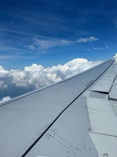As we departed D.C. it was rainy again and gray, an English sky. But as we entered the skies of southern Virginia and North Carolina, the sun broke through. As I looked from my seat, the clouds appeared again and the firmament changed colors, and I could see VA and NC 36,000 feet below, and I watched the tips of the plane’s wings undulate amidst some bumps as we traversed the skies.