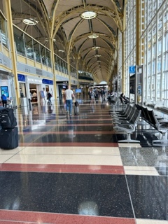This was my perspective at Reagan Airport in D.C. this week as I waited on my next flight. I was across from the bookstore and just down the corridor from Chick-fil-A (so it had to be good, right?). I love this little area. The windows behind me allow natural light to come through and light the floors and environs. As one who eschews flourescent light, I love this spot. Flourescence is still there, but the sunlight helps.