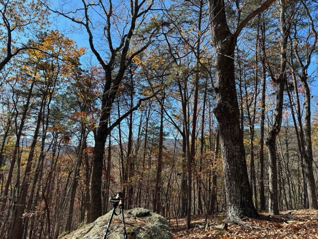 I was able to grab the hiking poles today after returning from Pennsylvania and take to the hills for a few miles. The weather was perfect–sunny, cool, with a slight breeze. The weather remains very dry here. The leaves crunched underneath the soles of my hiking boots. My hiking poles often slid on the hills because the ground was so dry. The leaves were brown brittle skis upon which my hiking poles slid atop the dry gound.