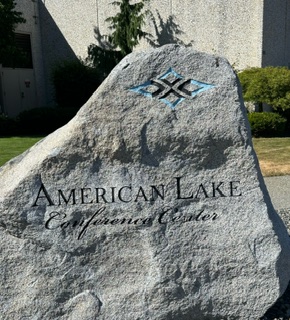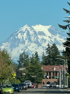 Am grateful to be able to train with fellow chaplains out West. Mt. Rainier towers over us with its rugged rocky snowy presence. The meadows below burst summertime colors like something out of an e.e. cummings poem. The Ponderosa pines stand majestic and straight with bark so large its layers appear like vertical rivers.