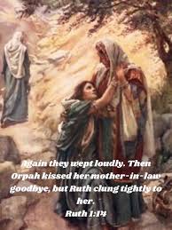 Ruth, a Portrait of Faith: Orpah remained in Moab but Ruth trusted the Lord and Naomi: “Then they [Orpah and Ruth] lifted up their voices and wept again. And Orpah kissed her mother-in-law, but Ruth clung to her” (Ruth 1:14). Ruth clung. Ruth held on. She gripped onto Naomi. She trusted God.